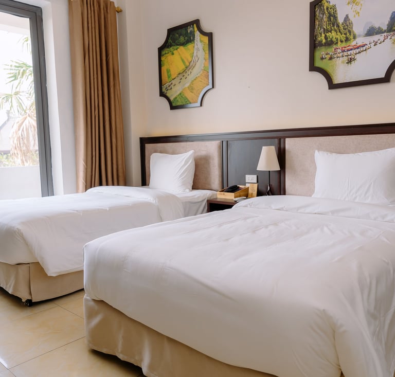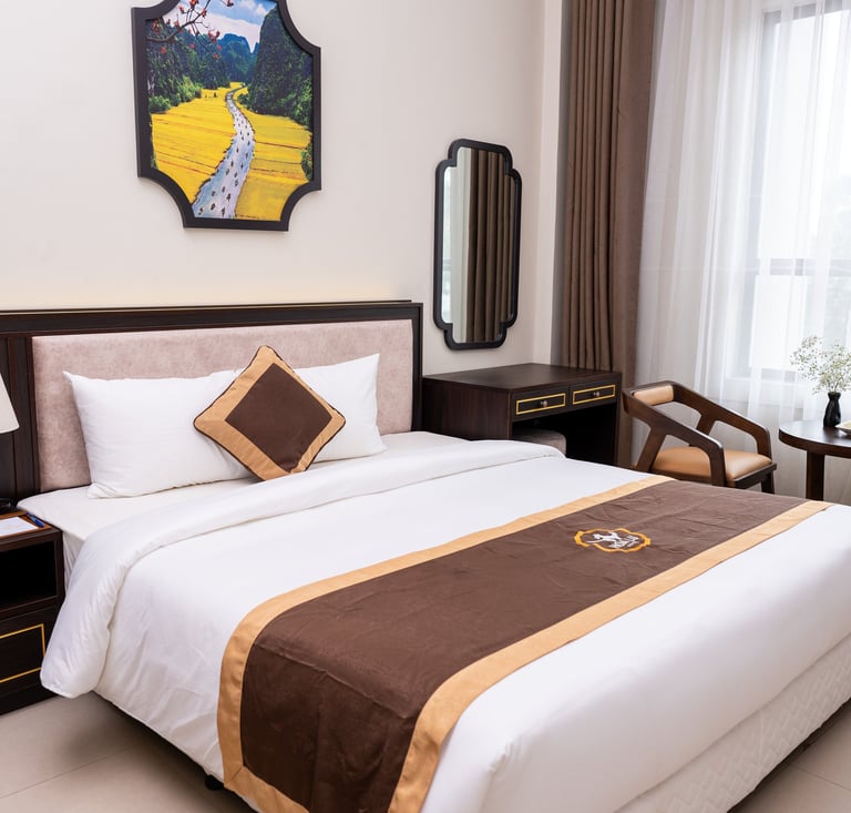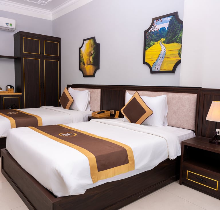 Sở hữu 80 phòng nghỉ đầy đủ tiện nghi vô cùng thích hợp cho các kỳ nghỉ ngắn ngày. Khách sạn Hoa Lư sẵn sàng mang đến cho bạn một trải nghiệm đầy thú vị, từ đó ghi dấu những kỷ niệm đáng nhớ trong hành trình khám phá Ninh Bình.