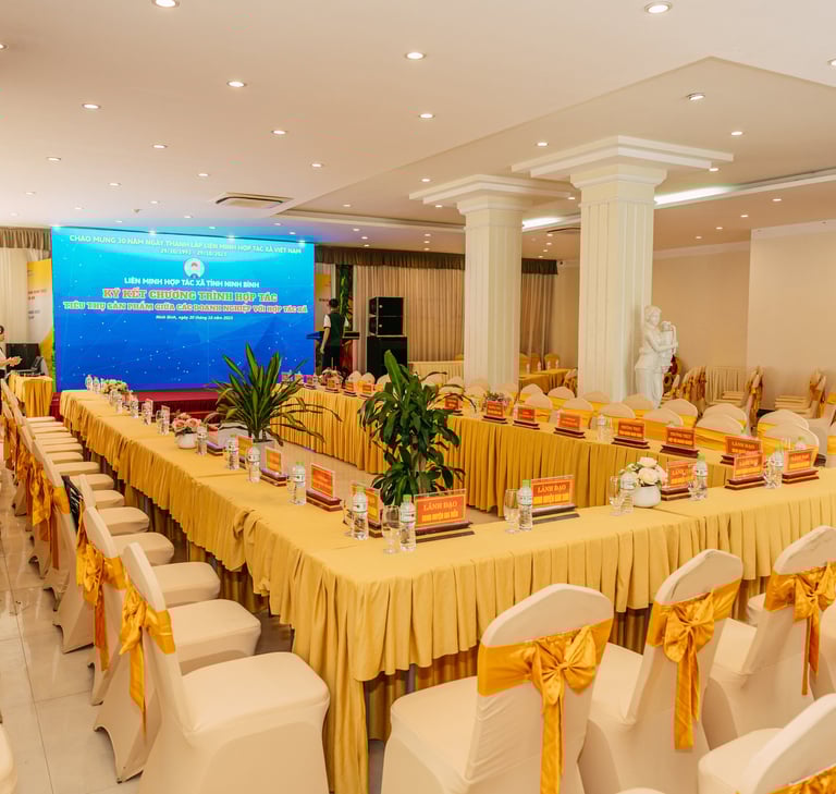 Cung cấp phong hội nghị hội thảo với sức chứa từ 100 - 300 khách được trang bị đầy đủ thiết bị nghe nhìn hiện đại. Tất cả sẽ giúp bạn tổ chức các buổi hội nghị hội thảo hay bất cứ sự kiện trọng đại nào.