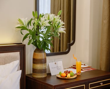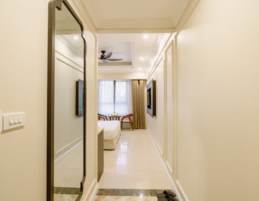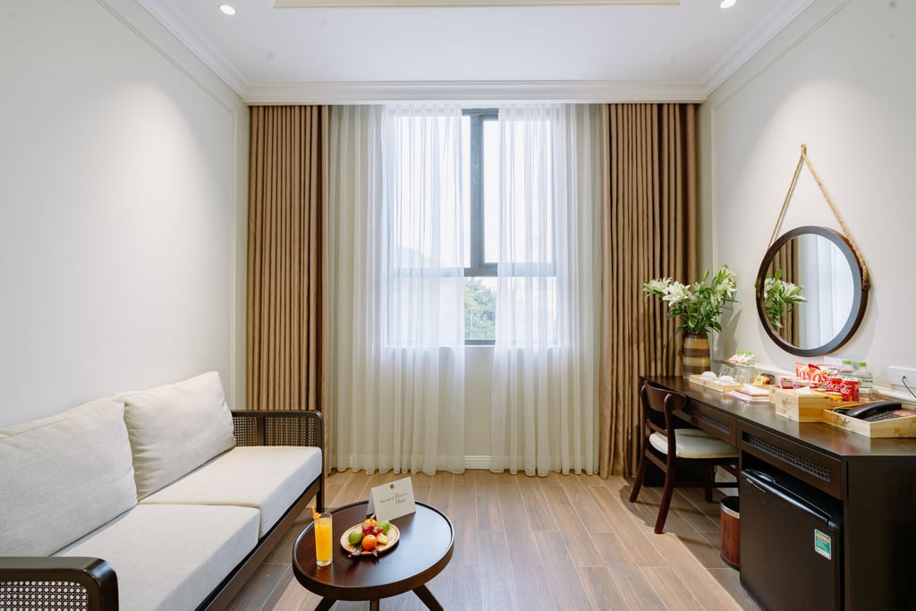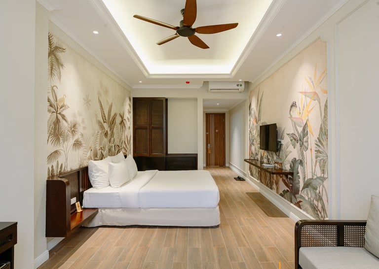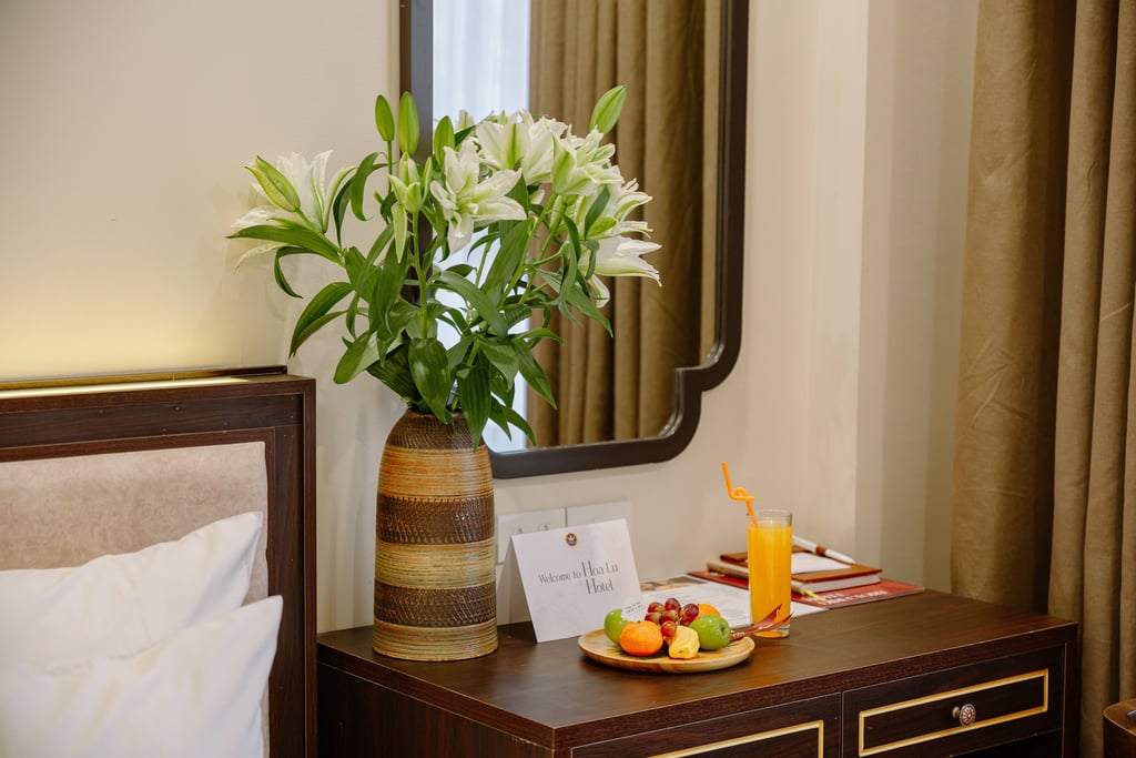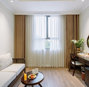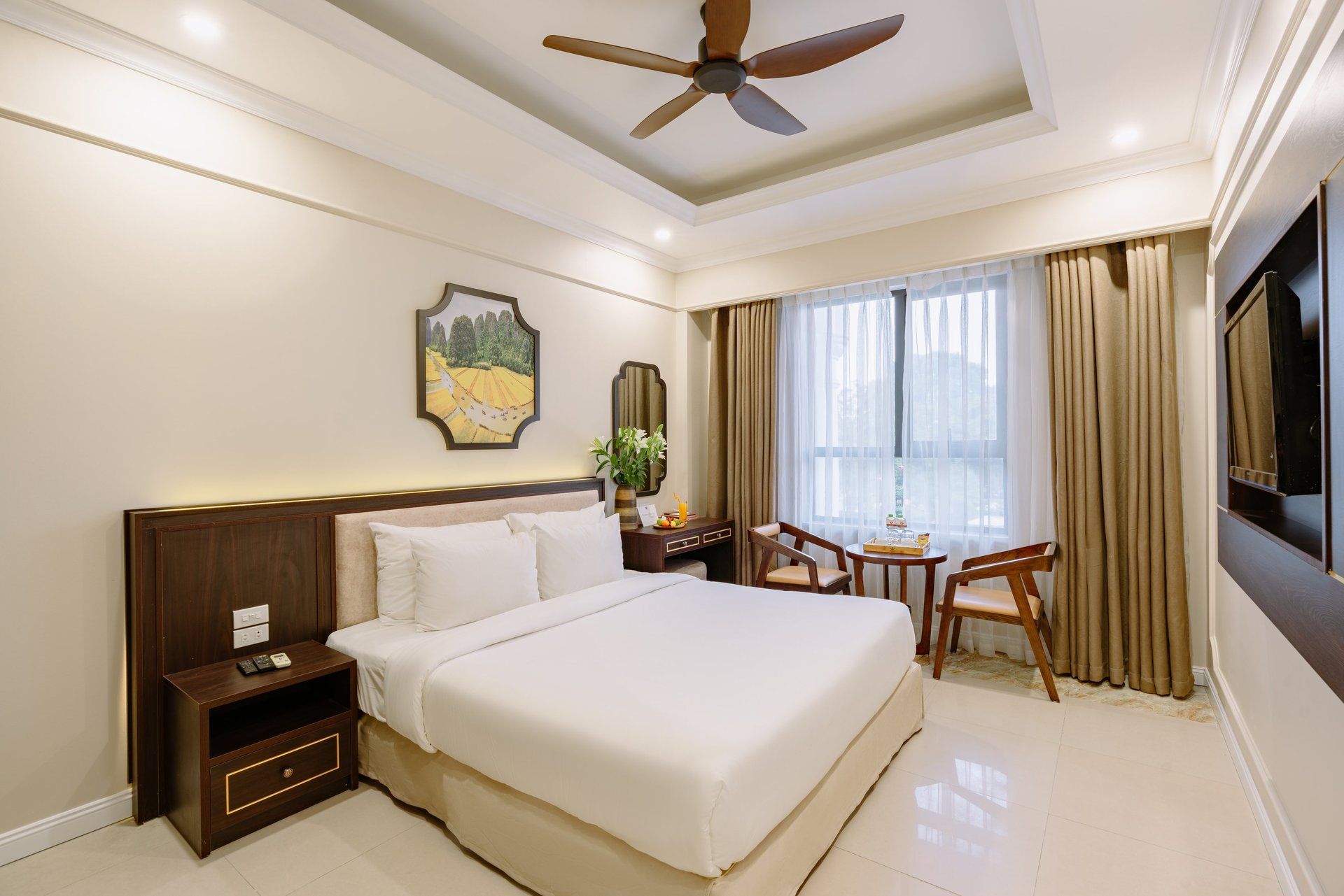 Phòng deluxe double của khách sạn mang đến cho du khách một không gian nghỉ ngơi sang trọng và thoải mái. Được thiết kế tinh tế, kết hợp giữa nội thất hiện đại và những chi tiết truyền thống. Đây là lựa chọn hoàn hảo cho những ai muốn tận hưởng kỳ nghỉ trọn vẹn.